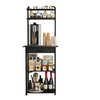 Organisateur de cuisine à domicile noir avec tiroir en tissu Coffee Bar Station Bakers Rack pour four à micro-ondes Rack de rangement
